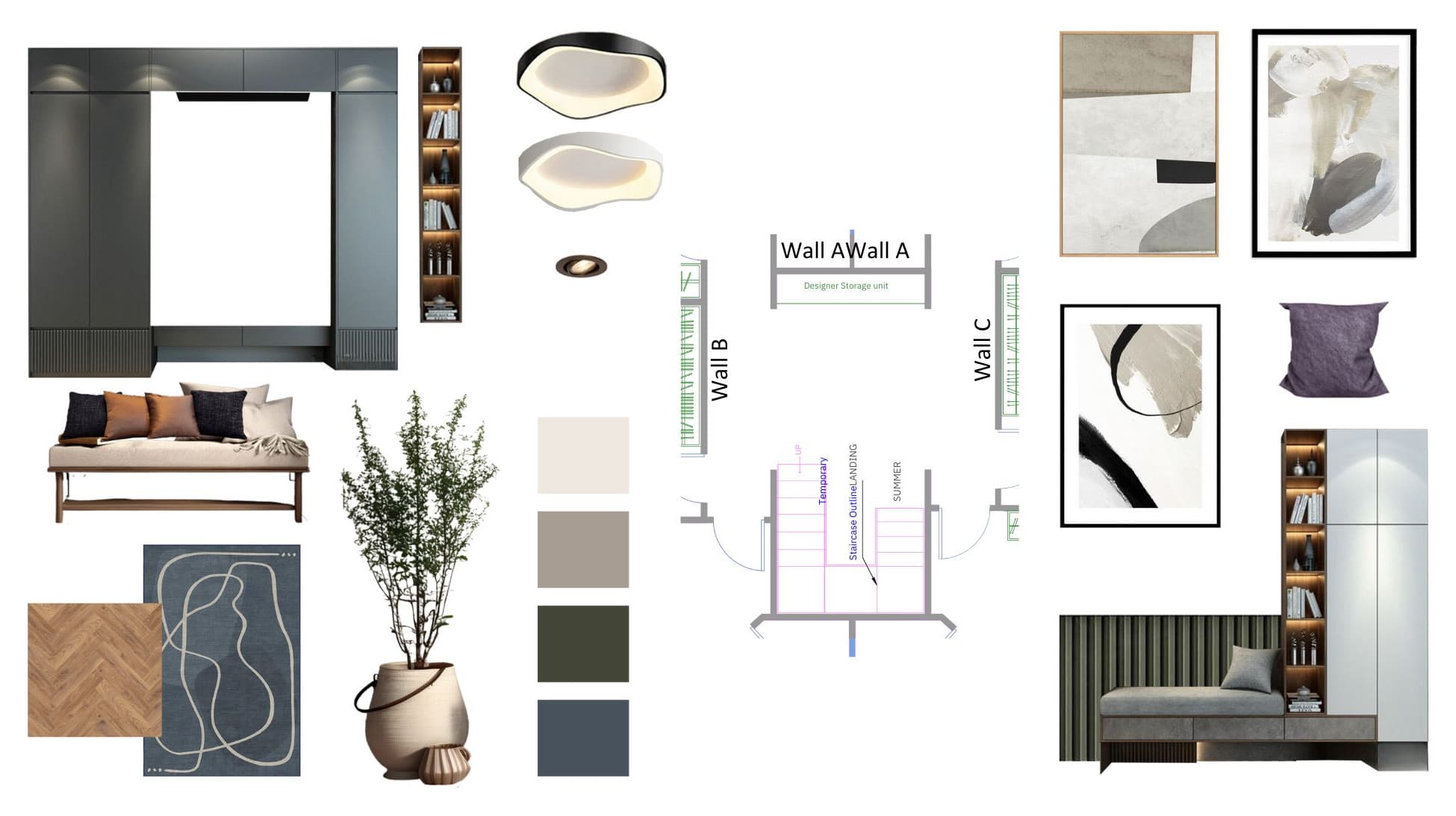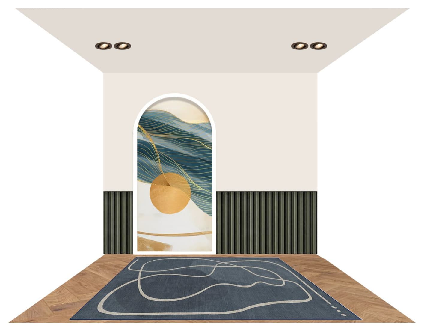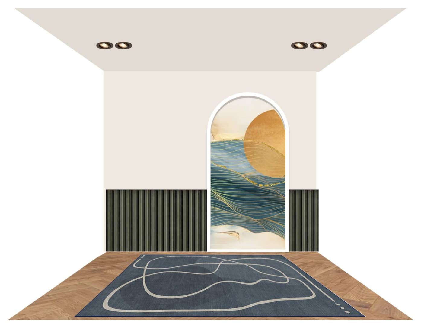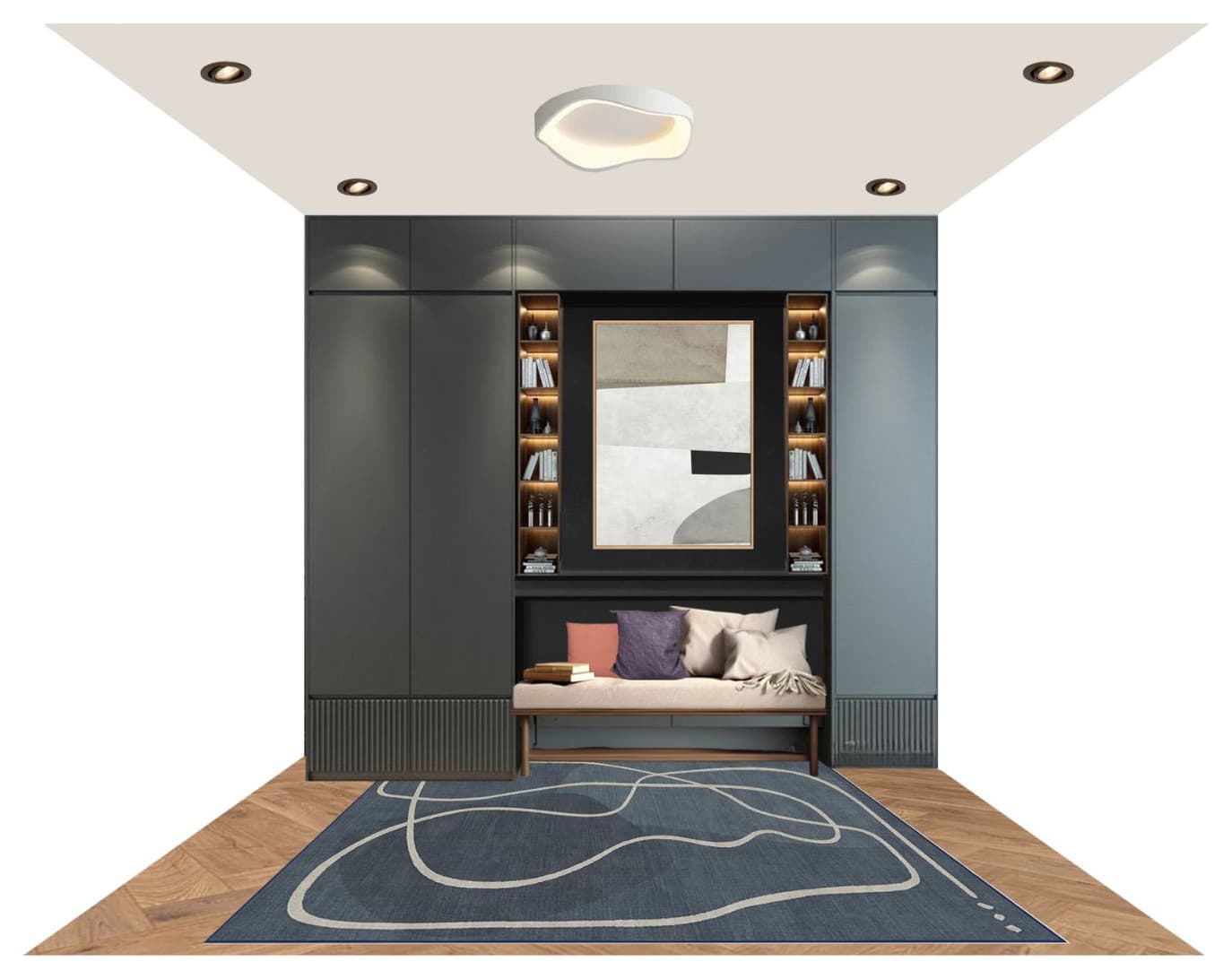 This project combines modern luxury and artistic elegance to create a cohesive and inviting interior space. Featuring a blend of arched feature walls, abstract artwork, gold accents, and contemporary wall panelling, the design emphasizes sophistication and warmth. The use of herringbone wooden flooring, geometric rugs, and sleek furniture enhances the visual appeal, while ambient lighting and sculptural decor add depth and character. With a harmonious colour palette and bespoke details, the space exudes a refined and sophisticated atmosphere, making it both functional and aesthetically striking.