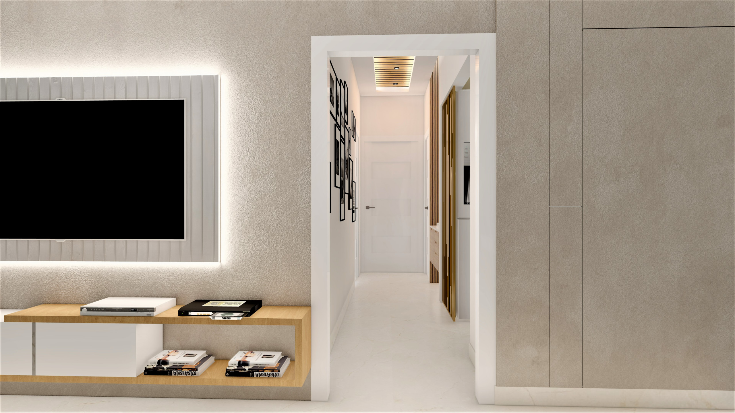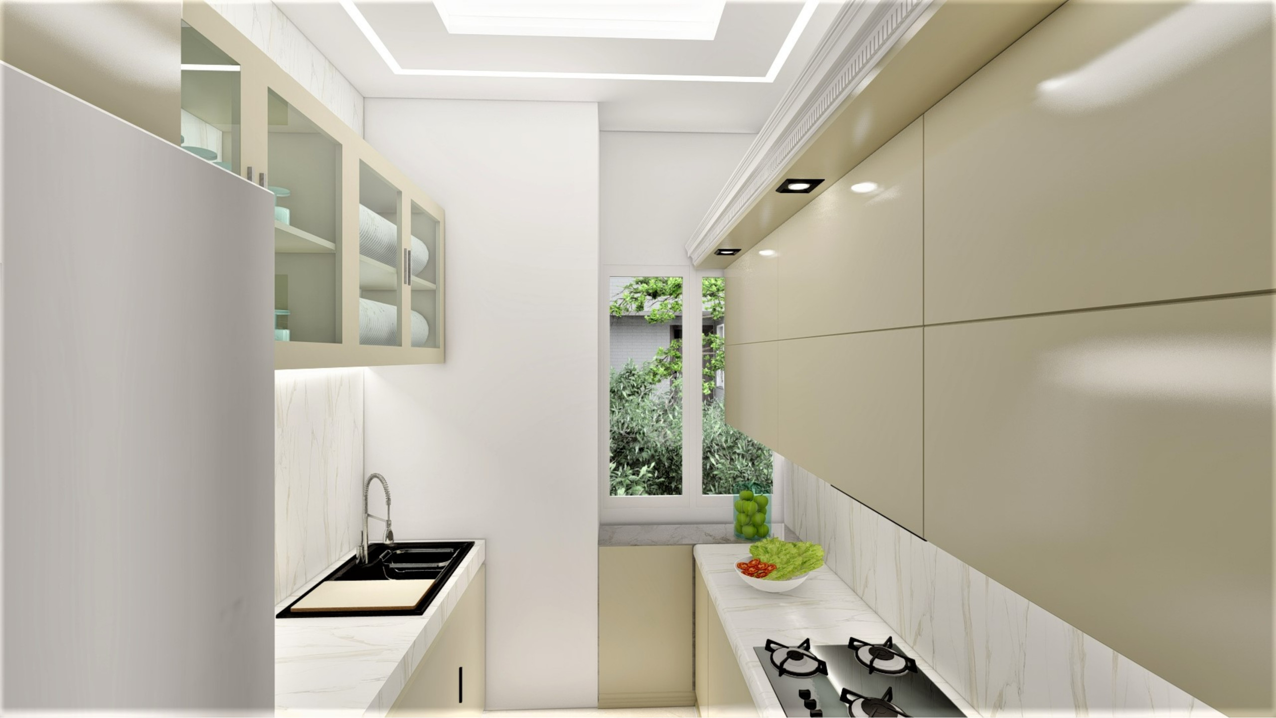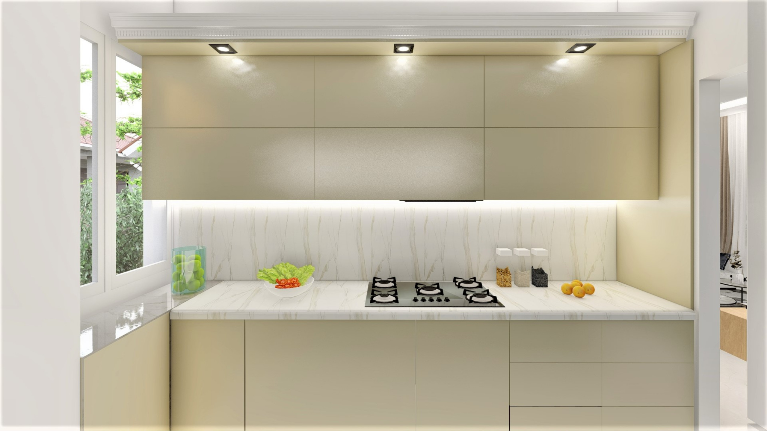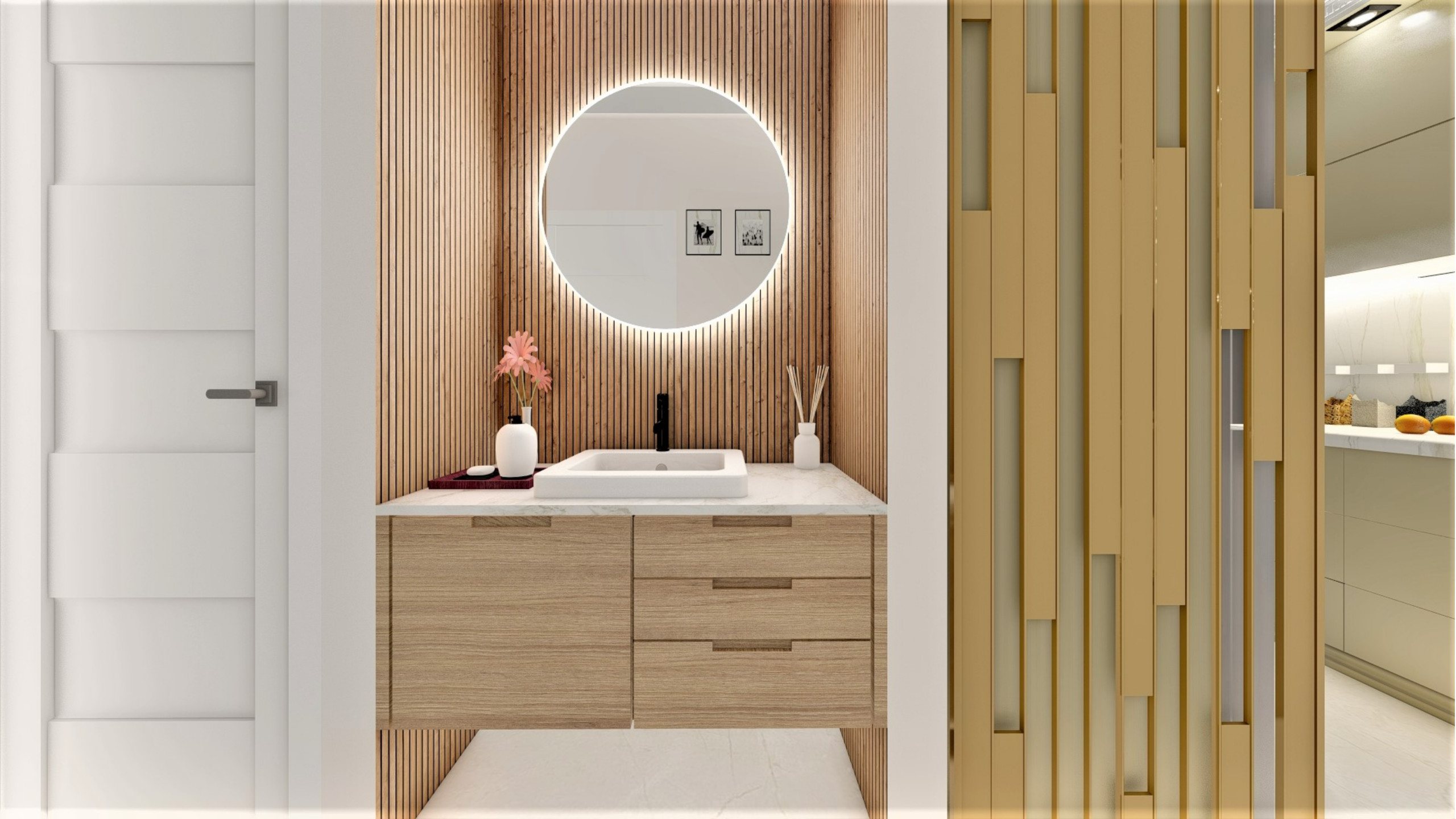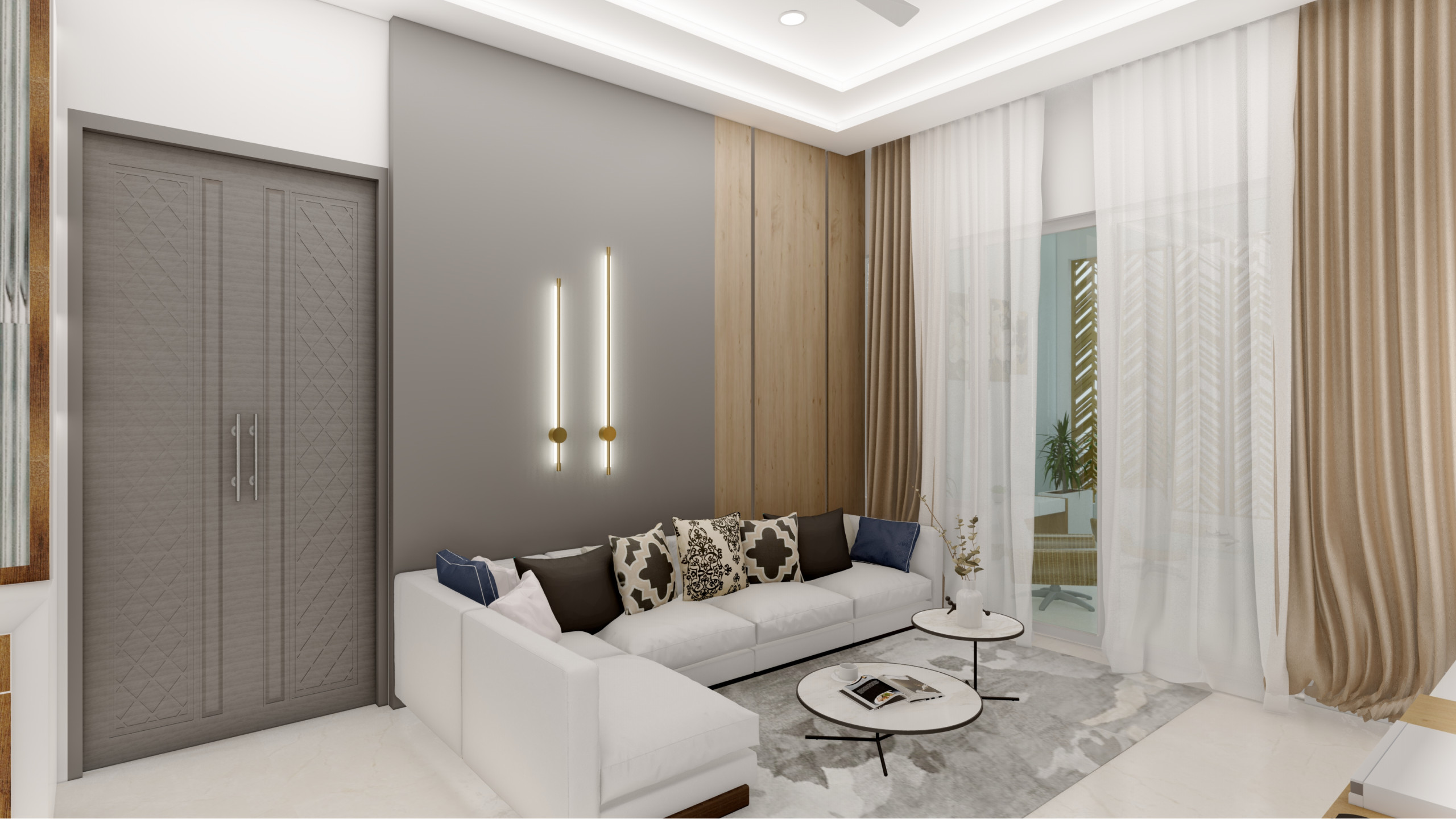 This contemporary open-plan living room and dining area exudes elegance and functionality. The bright and airy space features a stylish kitchen design with sleek cabinetry and modern appliances, seamlessly flowing into the inviting lounge. Warm tones and refined decor create a welcoming atmosphere, perfect for family gatherings or entertaining guests. Natural elements, such as wood accents and greenery, enhance the overall aesthetic, while chic furniture arrangements ensure a comfortable and sophisticated environment. The harmonious layout promotes easy interaction between the living and dining spaces, making this home an ideal blend of contemporary style and practicality.