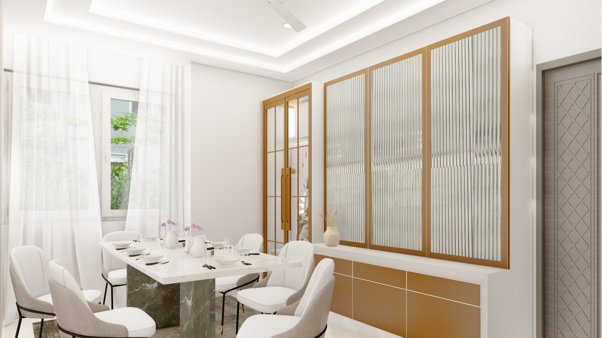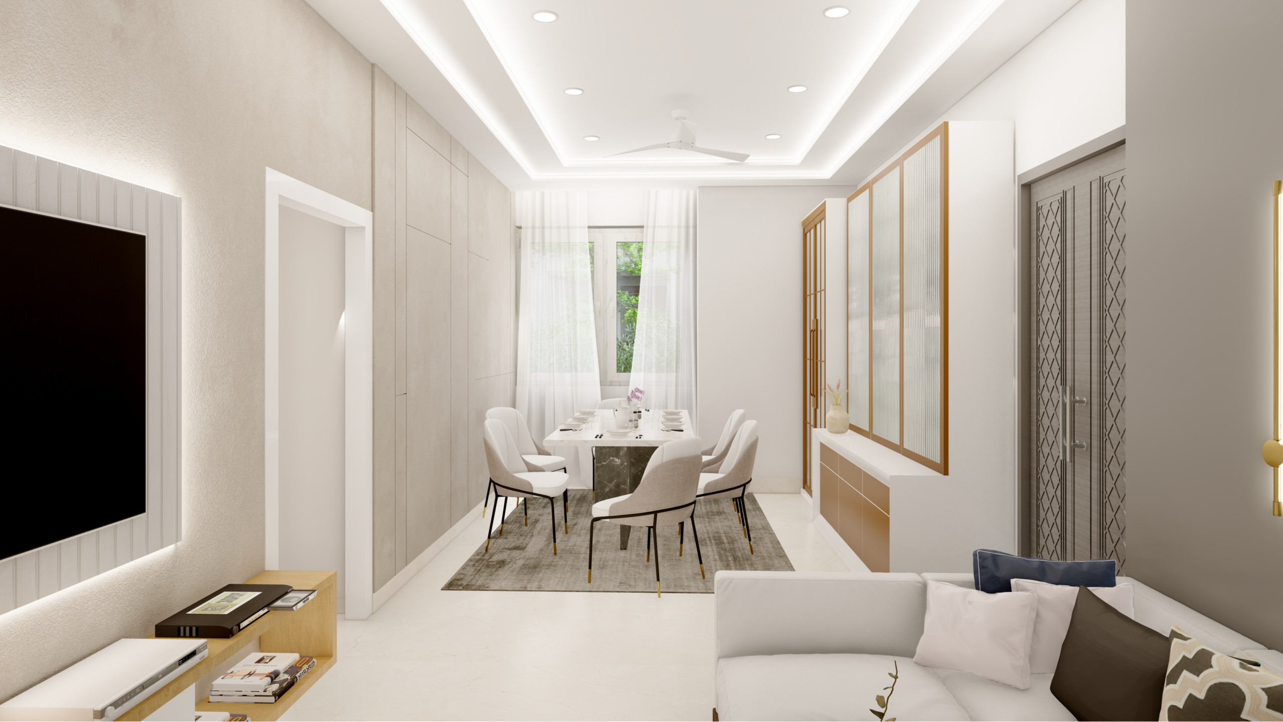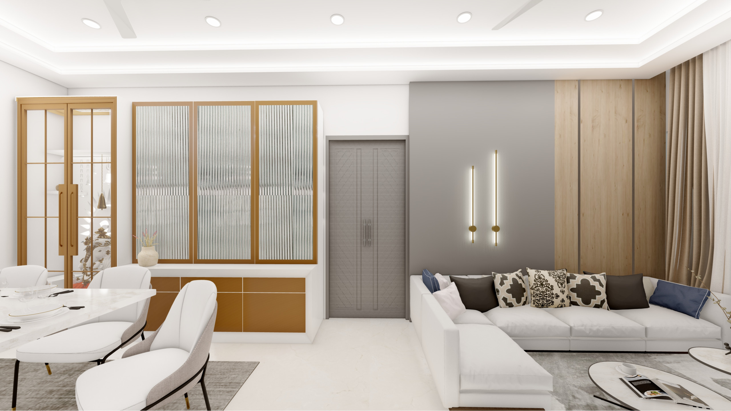 Contemporary Dining and Living Room with Chic Details in Farnham