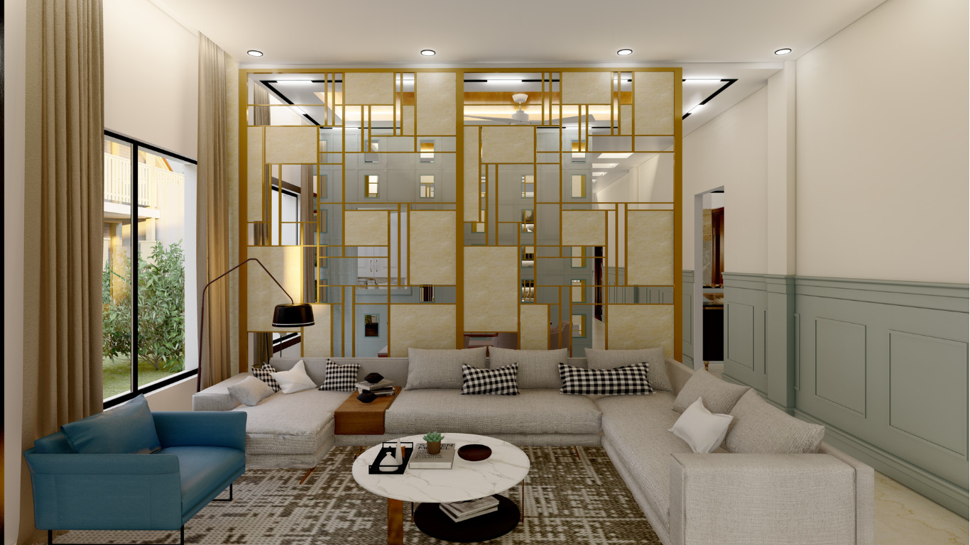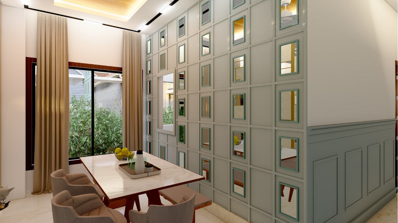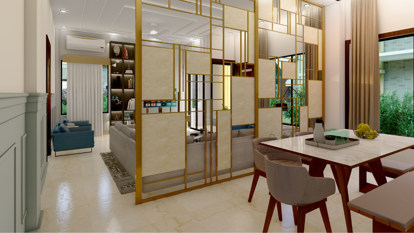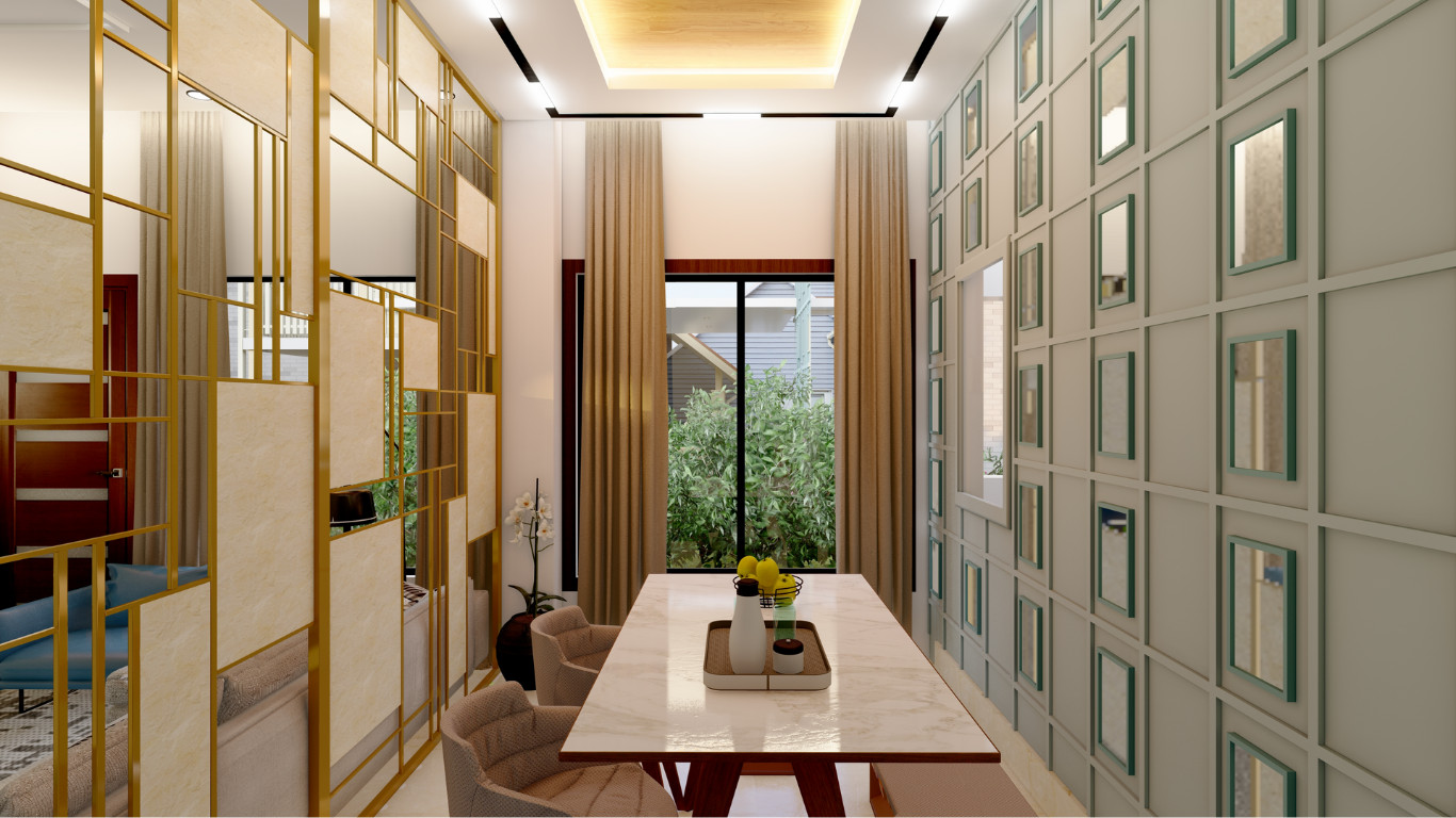 This stylish living and dining room seamlessly combines comfort and elegance, featuring modern living room furniture that enhances the cosy atmosphere. The open-plan living space invites natural light, creating a bright and airy feel. A contemporary dining area showcases a chic dining table surrounded by tasteful dining room accessories and accentuated by stunning dining room lighting. Thoughtfully designed with a harmonious colour scheme, this multi-functional space allows for both intimate gatherings and family-friendly living. Beautiful living room accents and striking living room wall art add character, making it a perfect setting for both relaxation and entertaining, ensuring a delightful elegant dining experience for all.