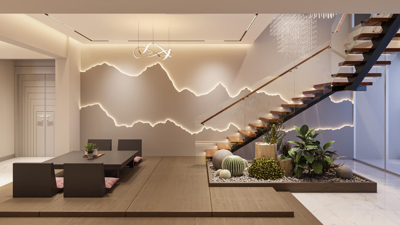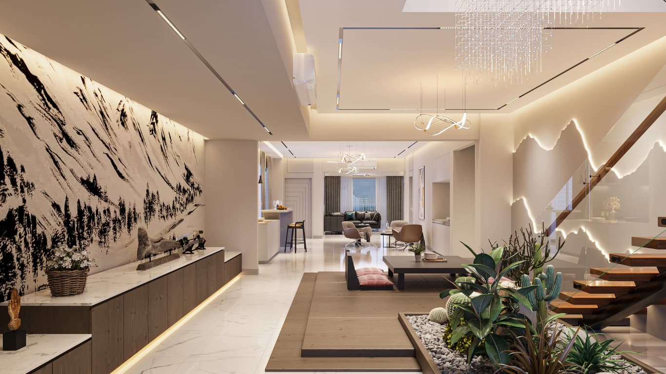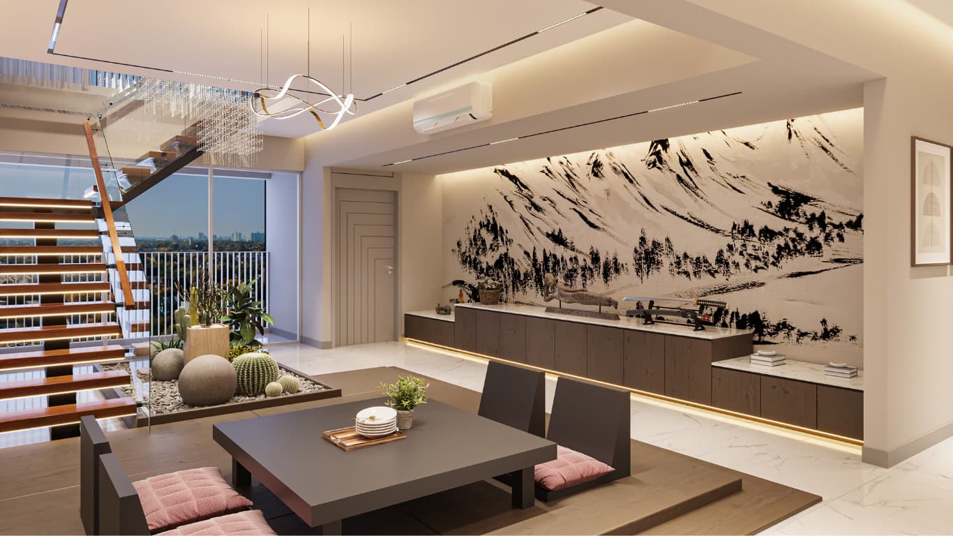 Wrapped in luxury with a high feel of sustainability, this living space is given an eco-refurbished treatment by Asian design inspiration, using engaging organic shapes and soft colour palettes to create serenity. House bamboo-made furniture with natural textiles, reclaimed wood accents, efficient lighting, and indoor plants placed with care to foster biophilic design. This minimalist living room demonstrates the perfect harmony in merging handmade details with notes of harmony, turning it into a cosy retreat that celebrates style with friendliness to nature.
