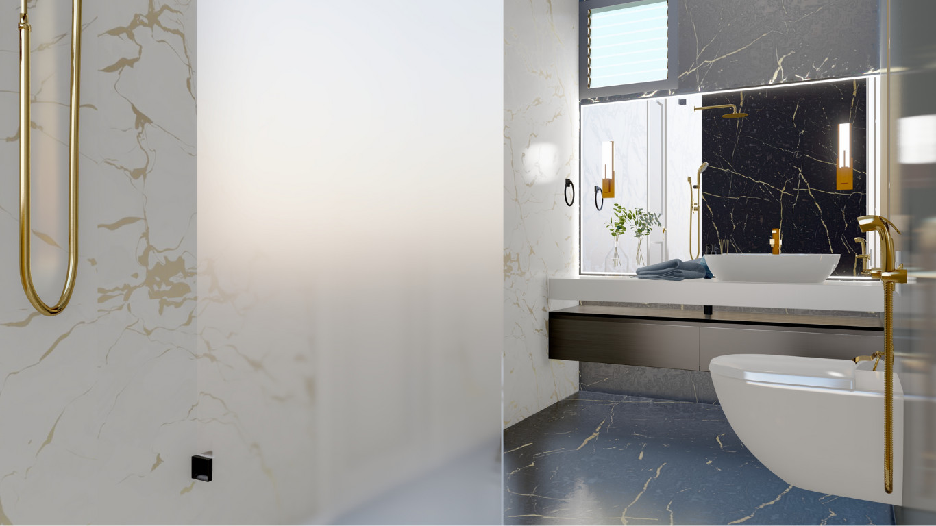 Indulge in the ultimate luxury with a modern bathroom design that combines elegance and functionality. Featuring high-end finishes, sleek modern fixtures, and custom bathroom elements, this space is designed to create a spa-like retreat in your own home. A freestanding bathtub and spacious walk-in shower offer the perfect blend of style and relaxation, while luxury bathroom lighting and designer accessories enhance the ambiance. Marble surfaces, minimalist vanities, and luxury bathroom tiles add a sophisticated touch, making this bathroom not only functional but also a statement of refined taste and modern elegance.