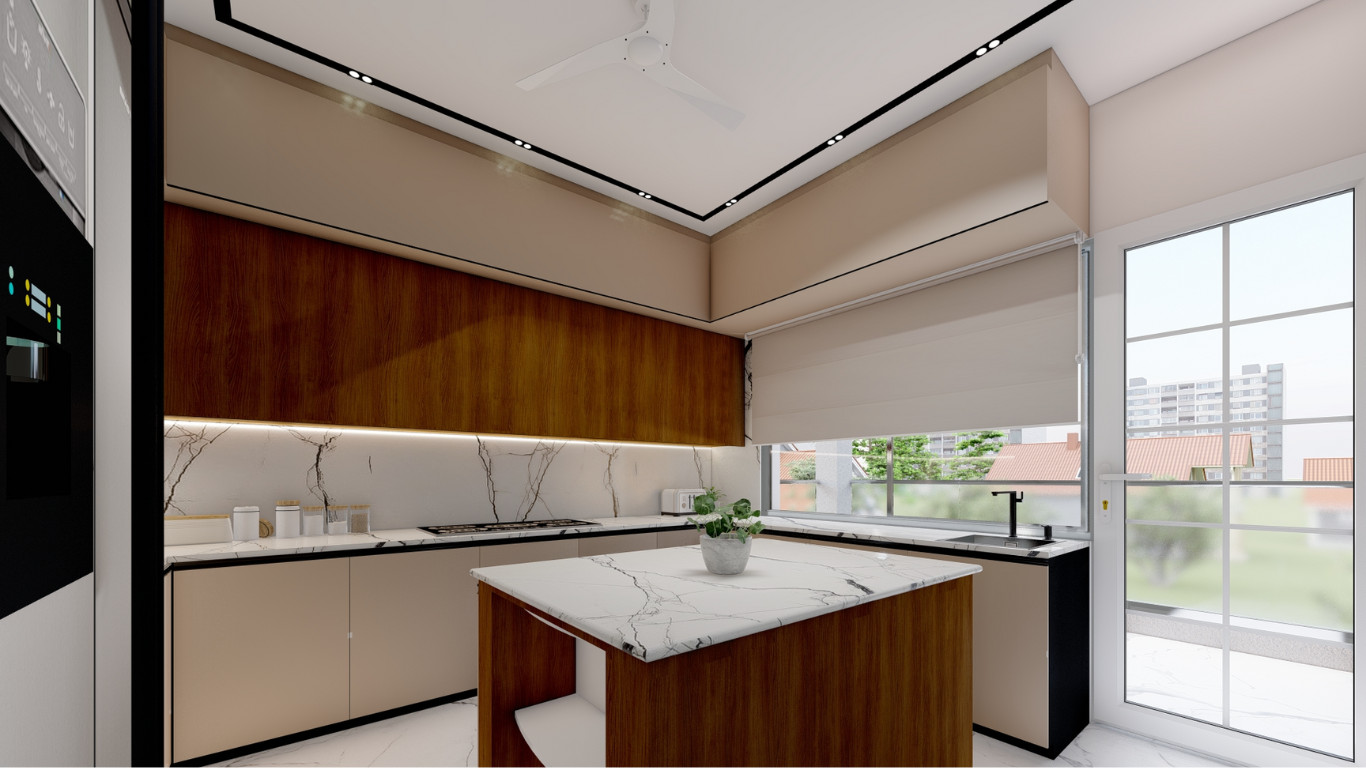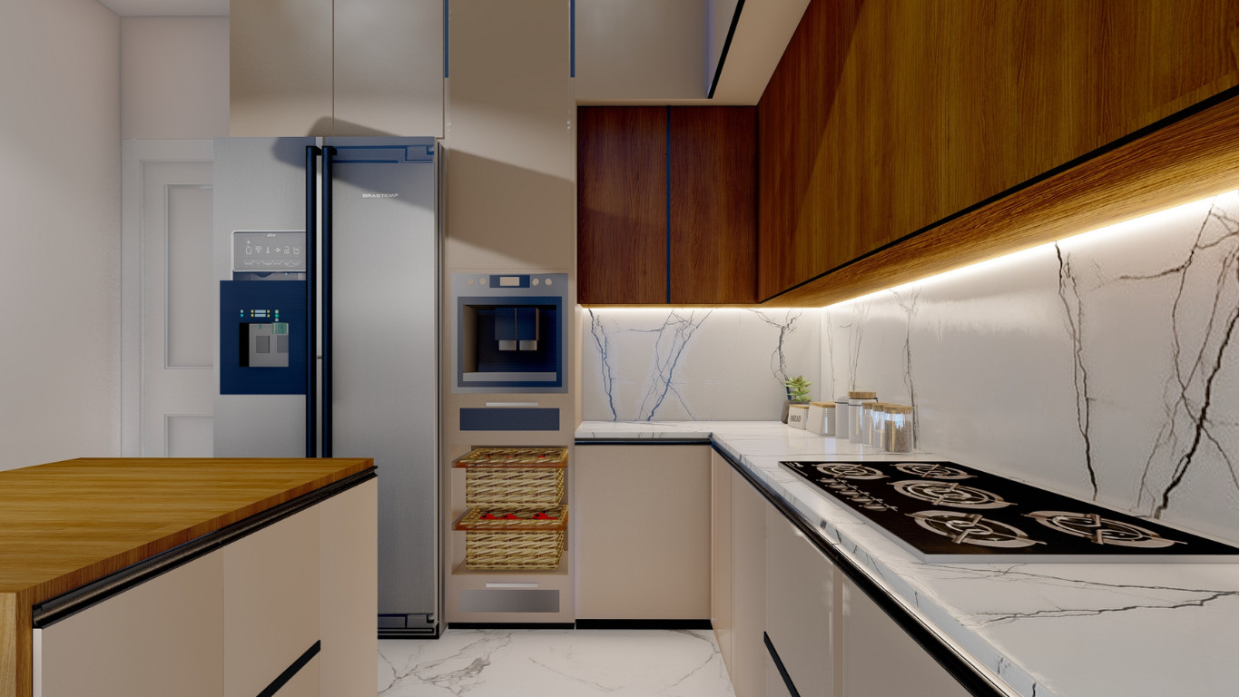 This modern kitchen design features sleek kitchen cabinets and quartz countertops, blending seamlessly with stainless steel appliances for a contemporary look. The open-plan layout highlights a spacious kitchen island and incorporates modern kitchen lighting to create a bright and inviting space. Thoughtfully chosen modern kitchen decor and a stylish modern backsplash complement the minimalist aesthetic. With custom cabinetry and smart modern kitchen storage solutions, this kitchen looks great and offers functionality. Integrating smart kitchen technology and cutting-edge kitchen trends completes this innovative kitchen renovation.