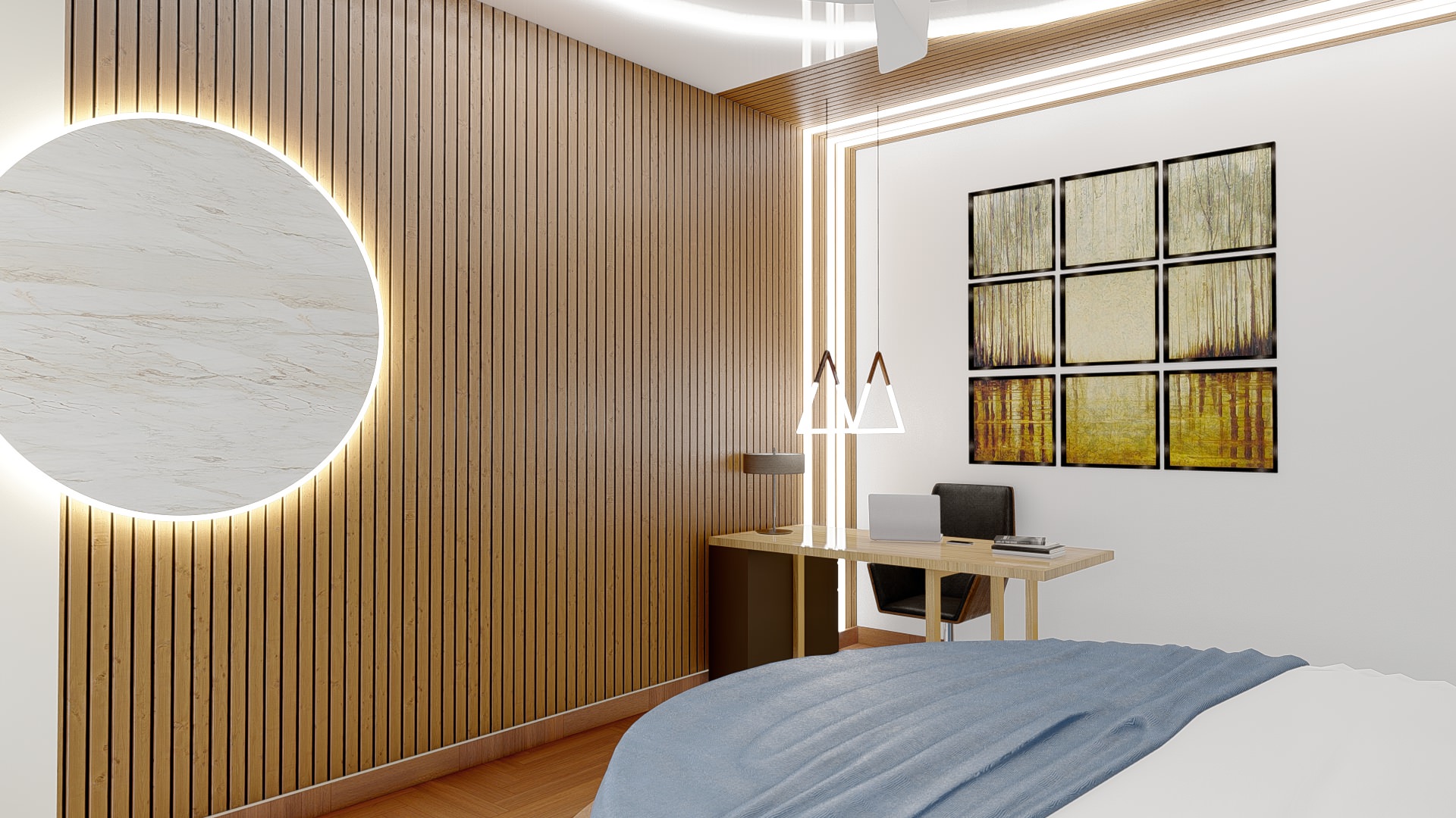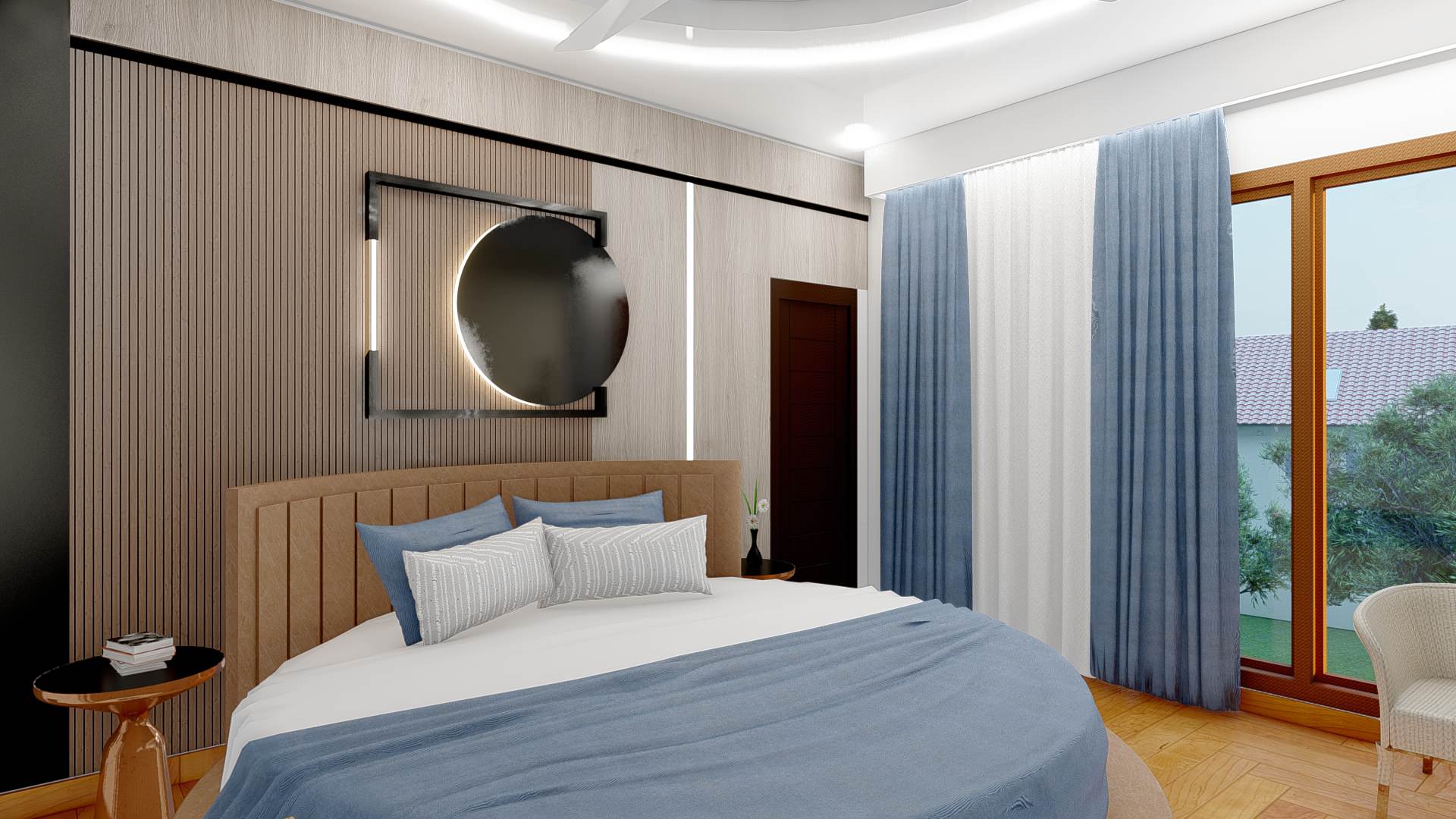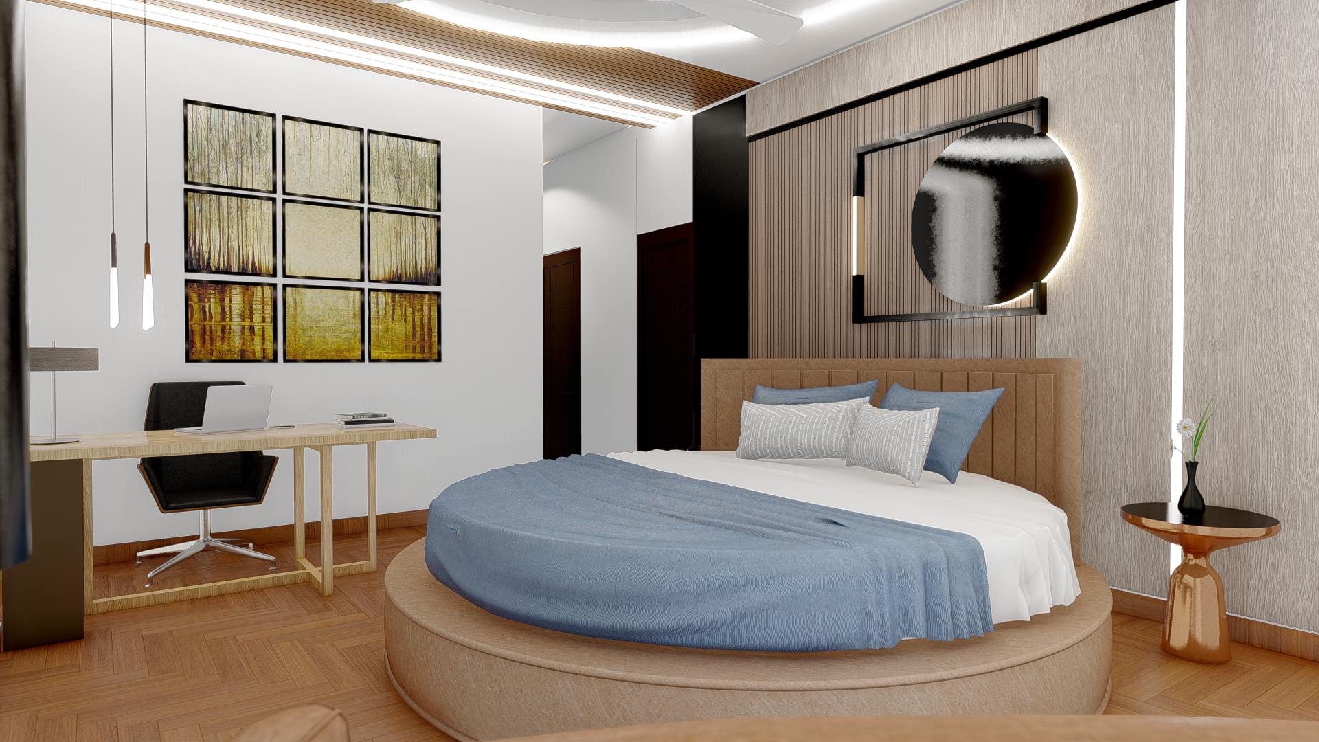 Enhance the room with modern lighting fixtures or statement bedroom lighting to add character and focus to the space. A minimalist approach with an open bedroom layout can create a sense of spaciousness, while luxurious bedding sets ensure comfort. Consider built-in bedroom storage and modern wardrobe designs to maximise space and functionality.