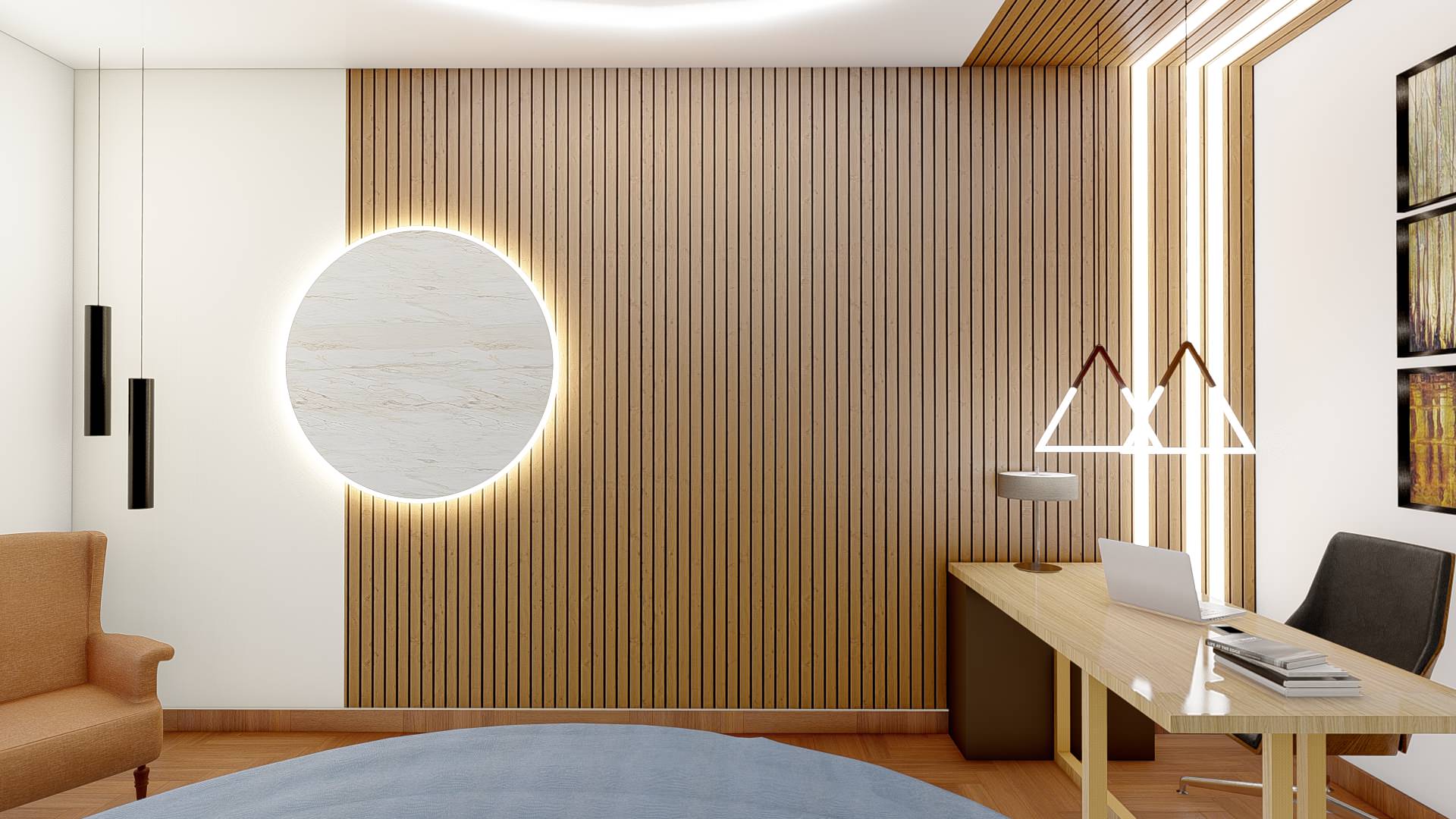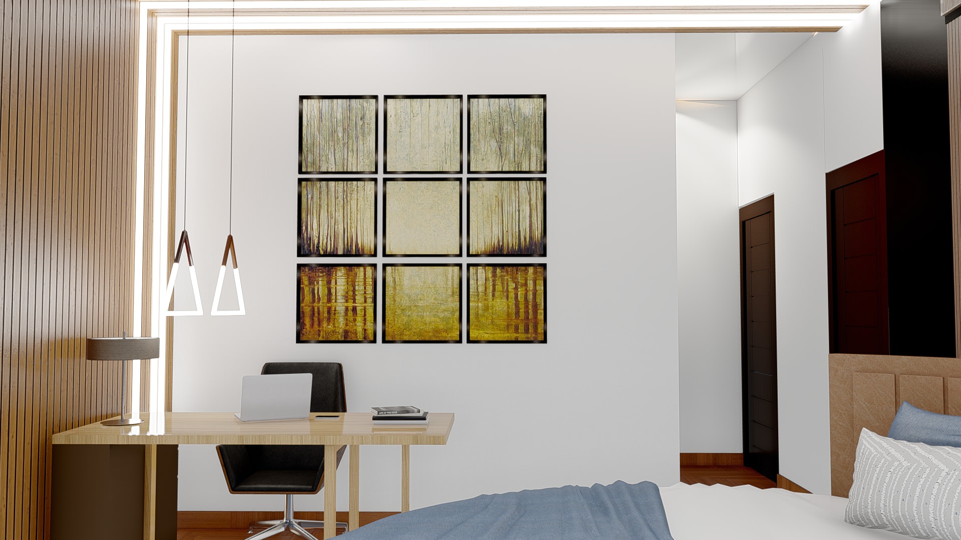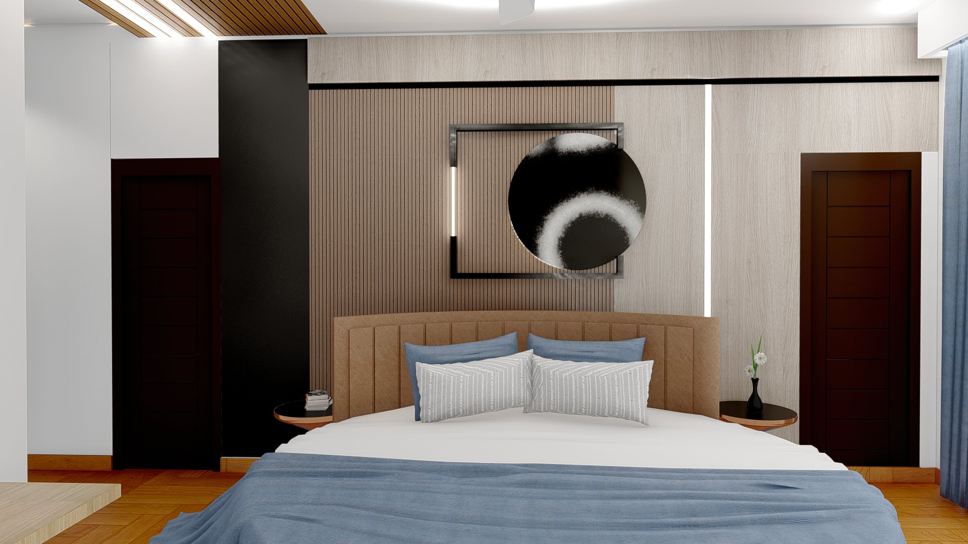 Enhance the room with modern lighting fixtures or statement bedroom lighting to add character and focus to the space. A minimalist approach with an open bedroom layout can create a sense of spaciousness, while luxurious bedding sets ensure comfort. Consider built-in bedroom storage and modern wardrobe designs to maximise space and functionality.