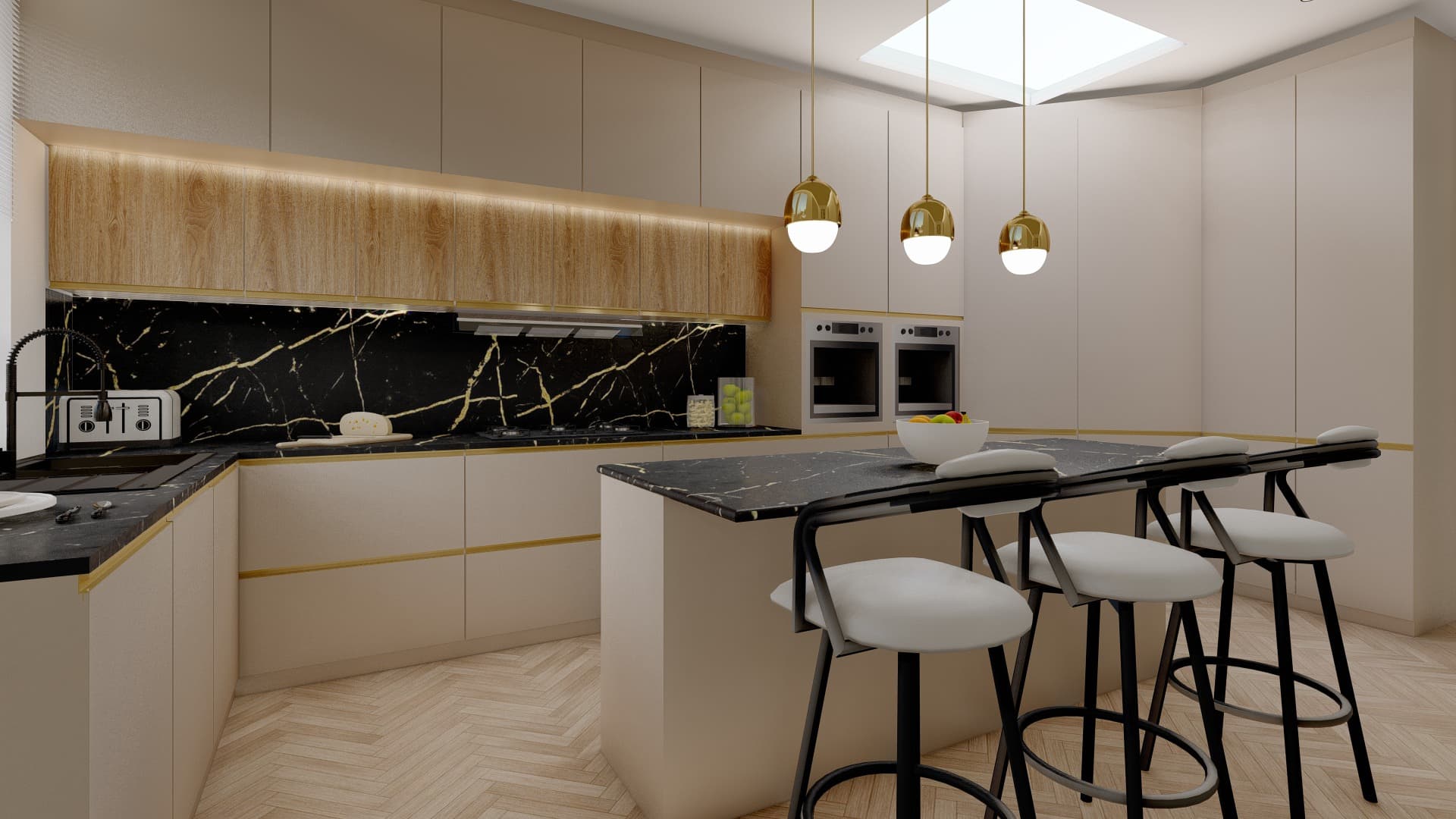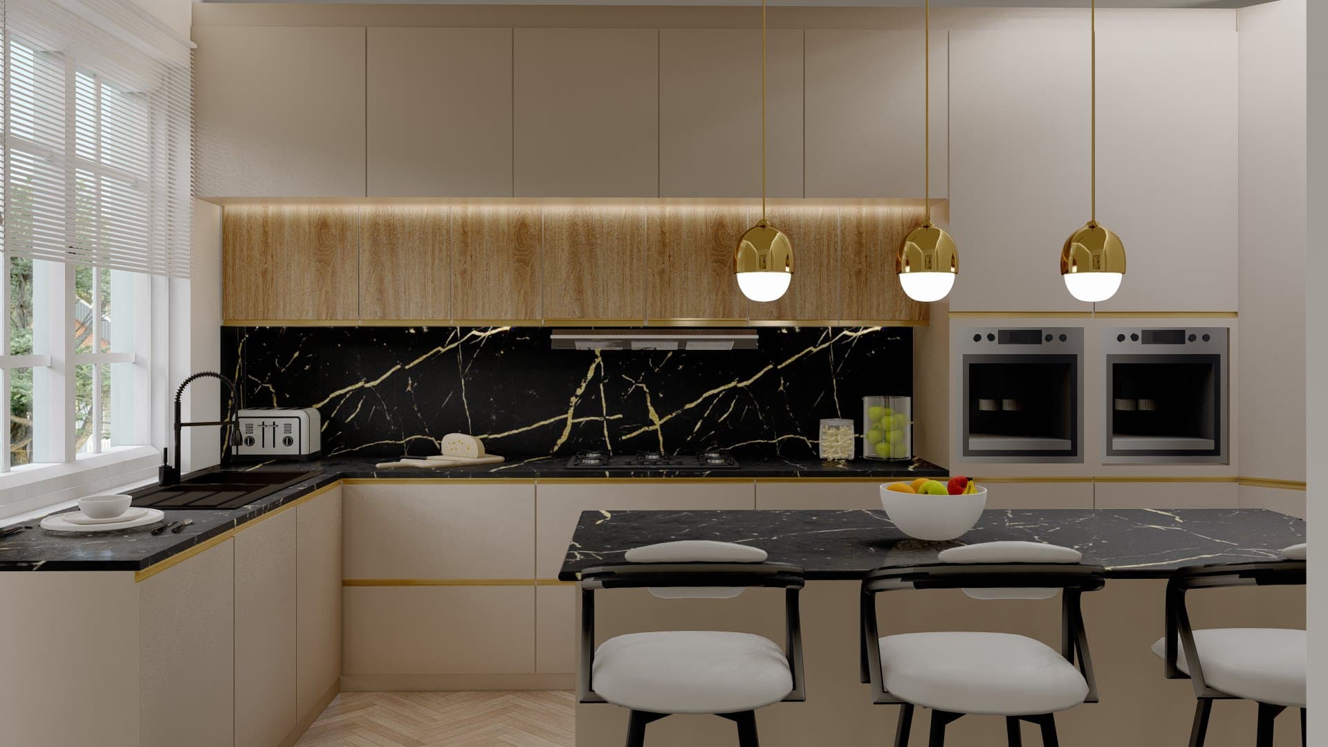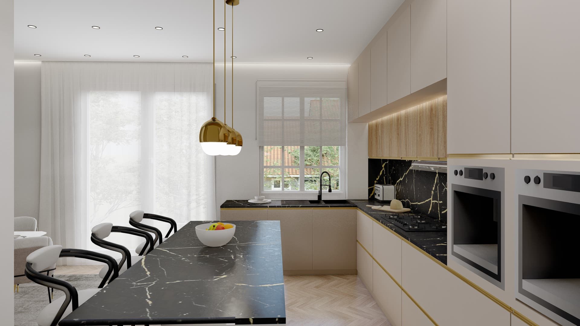 The kitchen features a stunning kitchen design that combines functionality and style, showcasing a modern kitchen aesthetic. The well-thought-out kitchen layout includes a spacious kitchen island that serves as both a prep area and a casual dining spot. Sleek kitchen cabinets and a chic kitchen backsplash enhance the overall appeal, while top-of-the-line kitchen appliances provide efficiency for everyday cooking. Stylish kitchen lighting illuminates the space, creating a warm atmosphere, and kitchen storage solutions ensure everything has its place. The design incorporates small kitchen ideas for maximising space, along with kitchen colour schemes that create a cohesive look. This family-friendly kitchen is perfect for both cooking and gathering, making it the heart of the home.