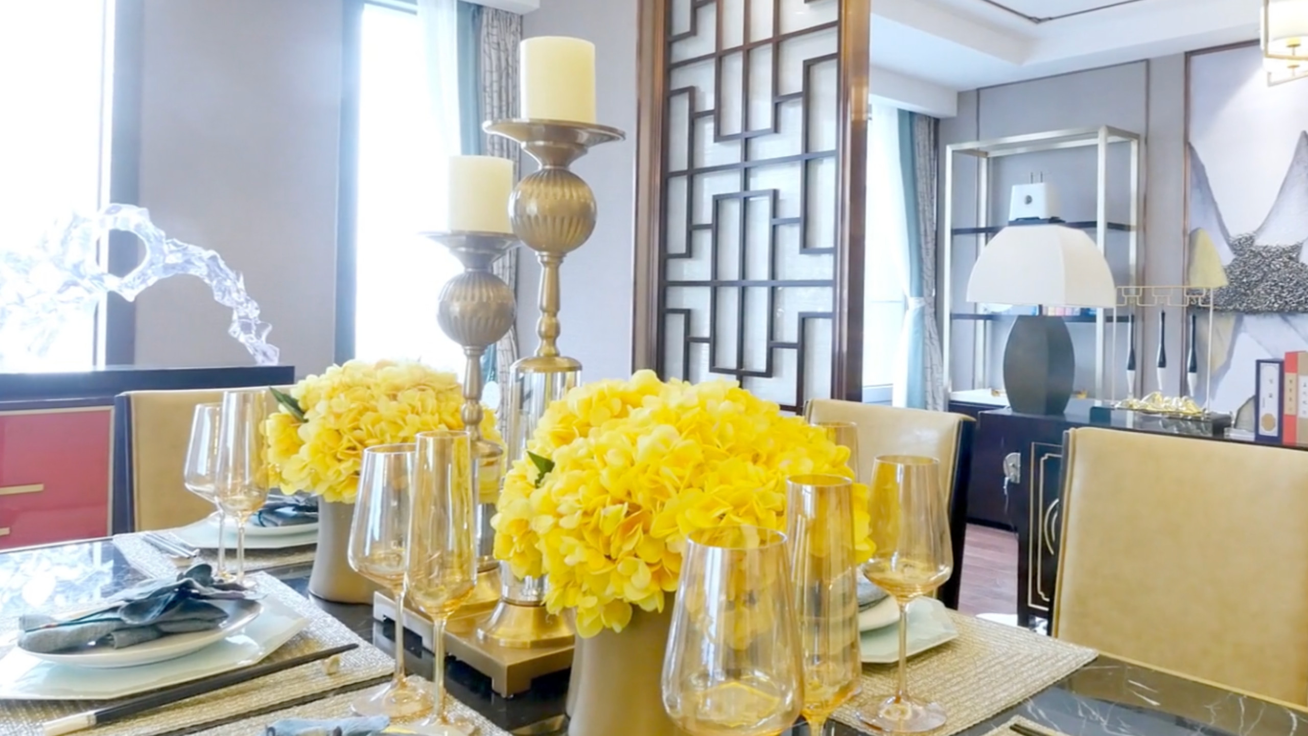 The modern luxury dining room exudes sophistication, featuring rich textures and high-end finishes throughout the space. A stunning marble dining table is complemented by plush velvet dining chairs, creating an elegant and comfortable atmosphere. Statement lighting, such as a modern chandelier, adds a touch of glamour, while textured wall coverings and wood accents bring warmth and depth to the design. The room is styled with luxury tableware and soft luxury fabrics, enhancing the overall ambience. This stylish dining area seamlessly blends contemporary dining design with bespoke dining furniture, offering a cosy yet sophisticated dining space perfect for entertaining.