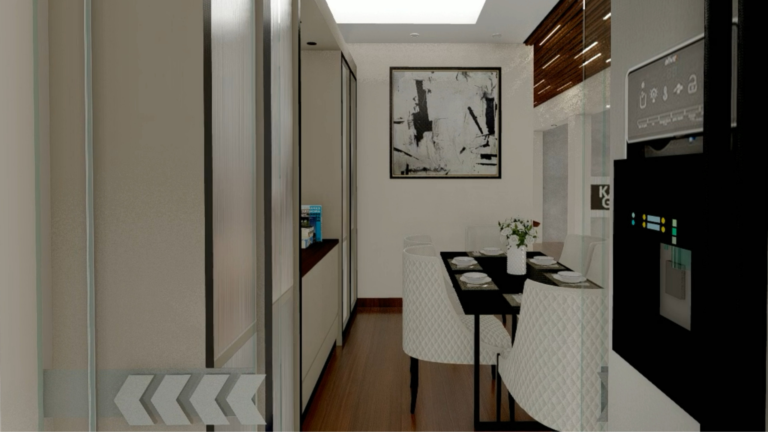 This charming small kitchen seamlessly opens into a stylish dining area, creating an inviting and efficient space. The contemporary design features a functional layout that maximizes every inch, making it perfect for both cooking and entertaining. Light and airy, the open-plan design enhances the overall atmosphere, while stylish accents add a touch of elegance. The integrated dining space provides a cozy nook for meals, making this compact area feel both practical and welcoming. With its minimalist aesthetic and trendy furnishings, this kitchen and dining room combo exemplifies modern living in a compact setting.