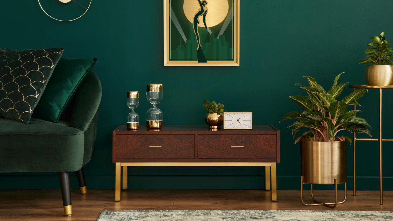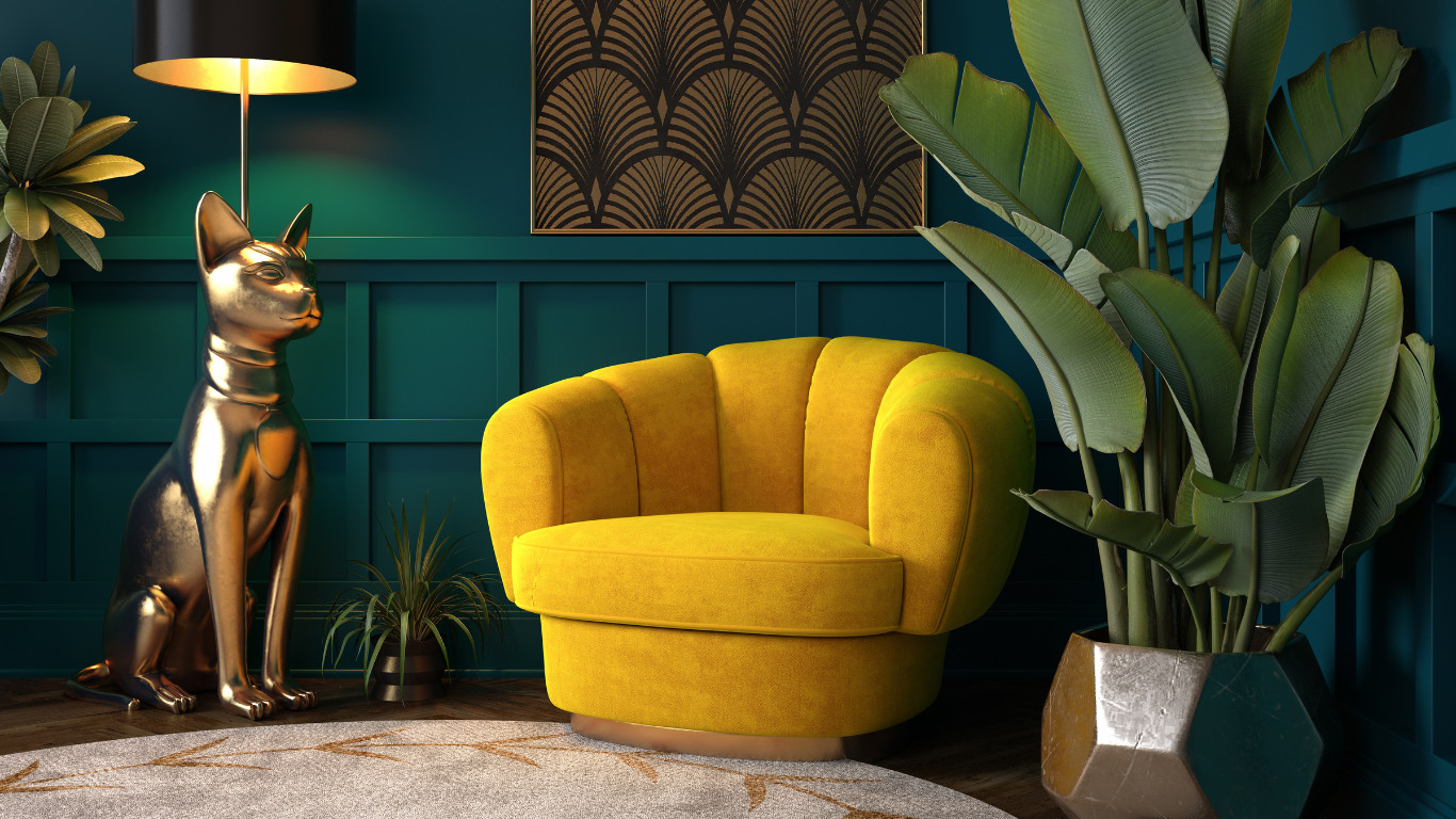 Vibrant Seating Area with Art Deco Accents in Potters Bar