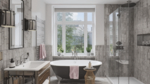 Tiles offer endless creative possibilities. From geometric patterns to bold colours and textured finishes, tiles can define the character of a bathroom. Feature walls, decorative splash backs, or patterned floors add visual interest without compromising functionality.