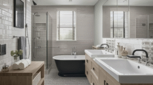 Minimalist bathrooms prioritise simplicity and clarity. Neutral colours, uncluttered surfaces, and streamlined fixtures create a calm, orderly environment. Thoughtful Furniture Selections ensure storage remains discreet while maintaining visual balance.