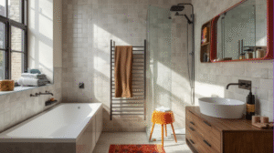Creating a spa-inspired bathroom encourages relaxation and wellbeing. Natural materials, soft textures, and calming colours work together to create a serene environment. Plants, candles, and subtle fragrances enhance the sensory experience, while plush towels and robes add comfort.