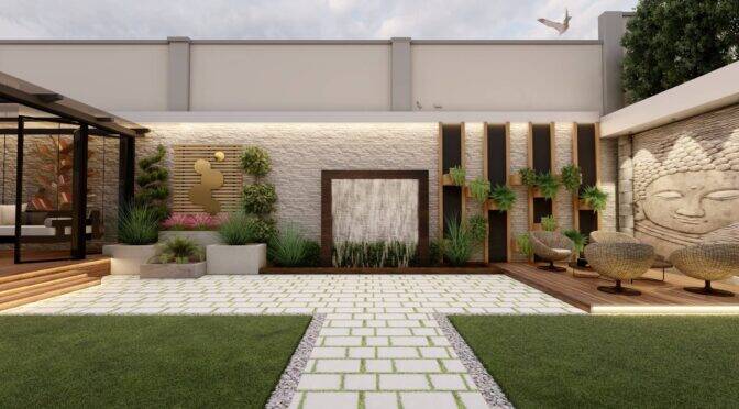 Planting plays a central role in shaping the space. Vertical greenery and layered planting soften architectural edges, introduce movement, and enhance the sensory experience of the garden.