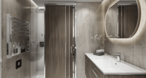 Wall Hung Sanitary Ware: A wall-mounted toilet and basin free up floor space, making the room feel larger.