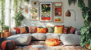 Bohemian design celebrates individuality through vibrant colours, layered patterns, and earthy tones. This style allows for creativity and personal expression.